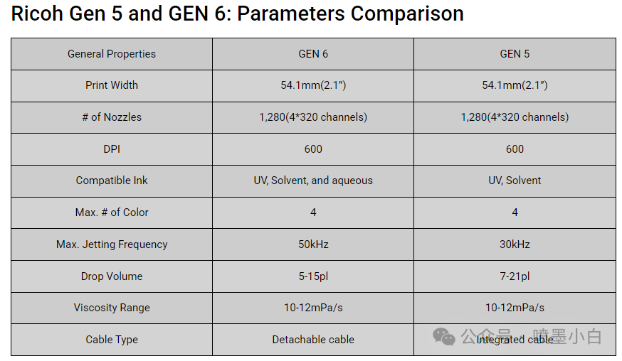 二、Ricoh Gen 6和Gen 5打印头的技术性能对比
